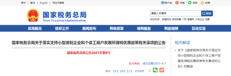 代理記賬公司:近期,國家稅務總局發布了《關于落實支持小型微利企業和個體工商戶發展所得稅優惠政策有關事項的公告》(國家稅務總局公告2021年第8號,以下簡稱《公告》)。